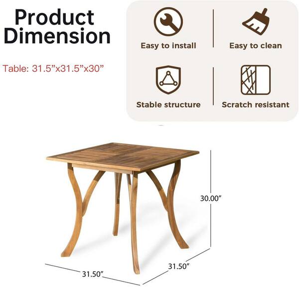 31.5 in. Square Acacia Wood Patio Table-Teak Finish, Outdoor Dining, Weather-Resistant, Stylish Coastal Design