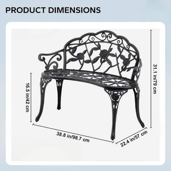 38.8 in. Metal Outdoor Bench with Backrest and Armrests-480 lbs. Capacity, Patio Bench for Garden/Porch/Yard