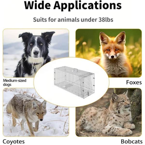 42" Galvanized Humane Live Animal Cage Trap-Foldable with Handle for Stray Cats, Dogs, Raccoons and More