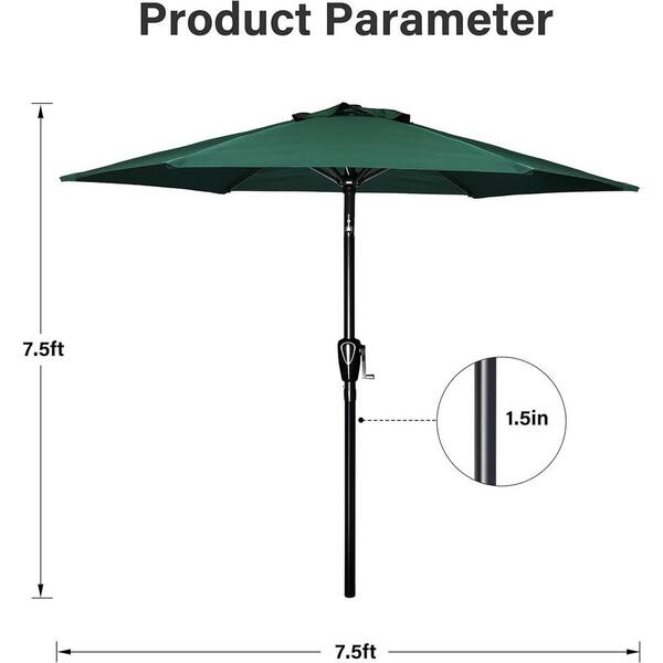 7.5 ft. Outdoor Patio Umbrella with Center Pole-6 Ribs, UV30+ Protection, Crank Handle, Vent Design in Green