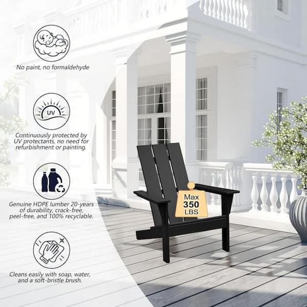 Black HDPE Adirondack Chair-Weatherproof, Deep-Seated and Easy Assembly for Patio and Yard