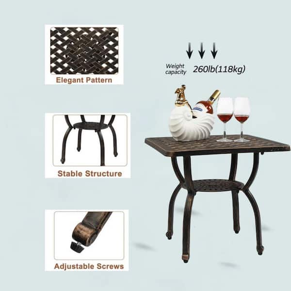 Cast Aluminum Outdoor Side Table-Anti-Rust Square End Table for Patio, Garden. Antique Bronze.