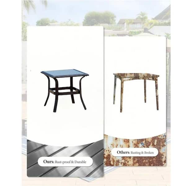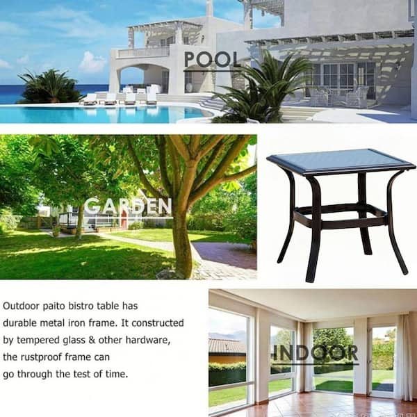 Patio Side Table Wicker with Glass Top-Outdoor Garden Balcony Furniture, 19 in. Handwoven PE Rattan and Iron Frame