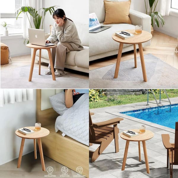 Round Oak End Table-Solid Wood Nightstand, Bedside Table for Living Room and Bedroom, Compact and Sturdy (Natural)