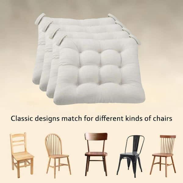 Textured Chair Seat Pad Set-4 Pieces, 15.5 in. x 16 in. Comfy Dining Kitchen Chair Cushions with Velcro