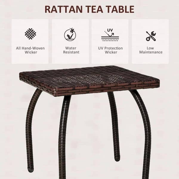 Wicker Side Table Outdoor-All-Weather PE Rattan End Table, Patio Coffee Table, 17.75" Square, 66lb Capacity.