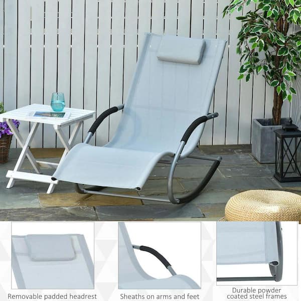 Zero Gravity Metal Patio Rocker with Detachable Pillow-Outdoor Rocking Chair, Weather-Resistant Steel & Mesh, Grey
