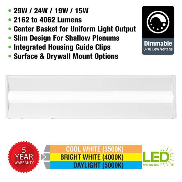 1 ft. x 4 ft. Center Basket Integrated LED Troffer Light Surface Mount Kit 3500K 4000K 5000K 29W/24W/19W/15W (8-Pack)