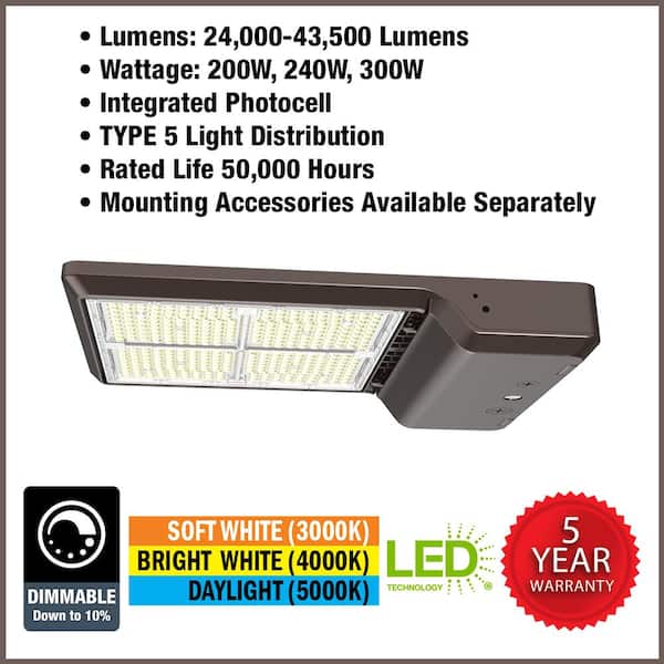 1000-Watt Equivalent Integrated LED Bronze Area Light Straight Arm Kit 24000-43500lms TYPE 5 Adjust Lumens CCT (8-Pack)