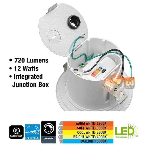 4 in. Canless Integrated Junction Box LED Recessed Light Trim 2-Way Mounting 650 Lumens Adjustable CCT (8-Pack)