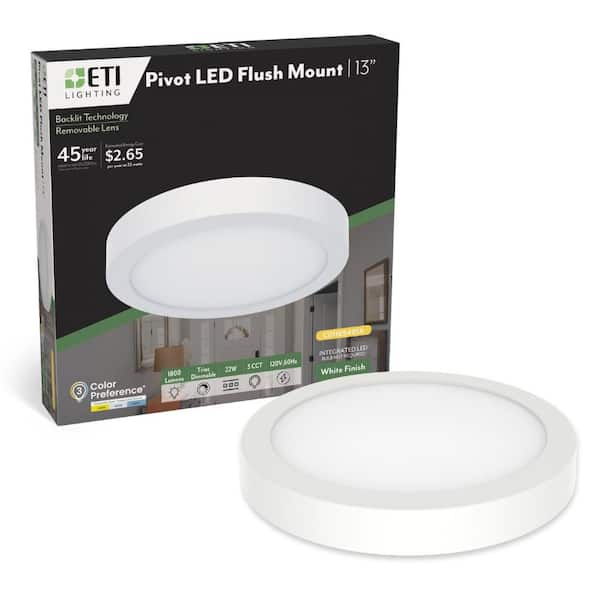 PIVOT 13 in. White Round LED Flush Mount Ceiling Light 1800 Lumens 22-Watt 120V Adjustable CCT Dimmable