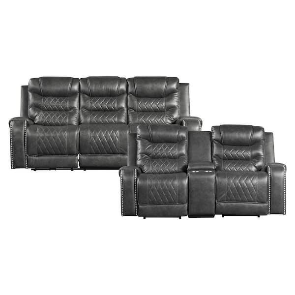 Bergen 164 in. W Round Arm Microfiber Rectangle Sofa in Gray with 5-Seats