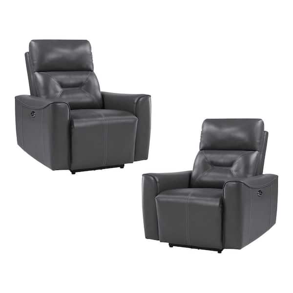 Brimmer 36.5 in. D Dark Gray Faux Leather Straight Power Reclining Chair with USB Port (Set of 2)