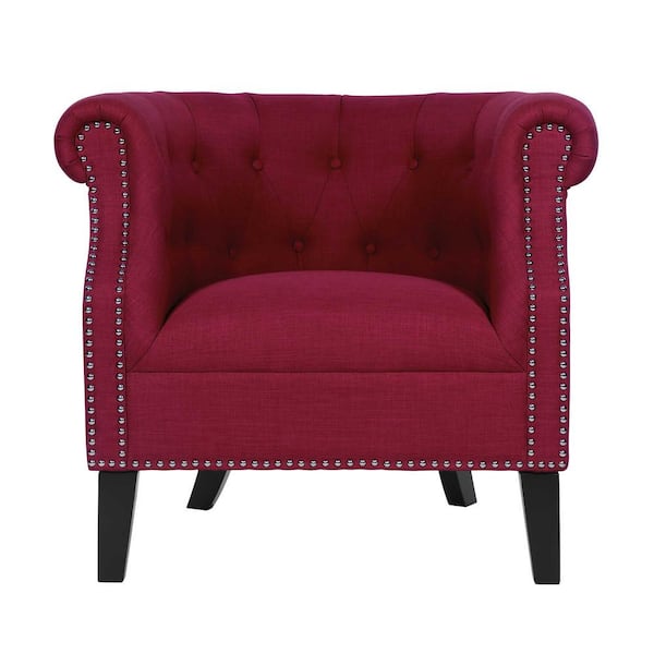 Carmen Red Textured Upholstery Tufted Barrel Back Accent Chair