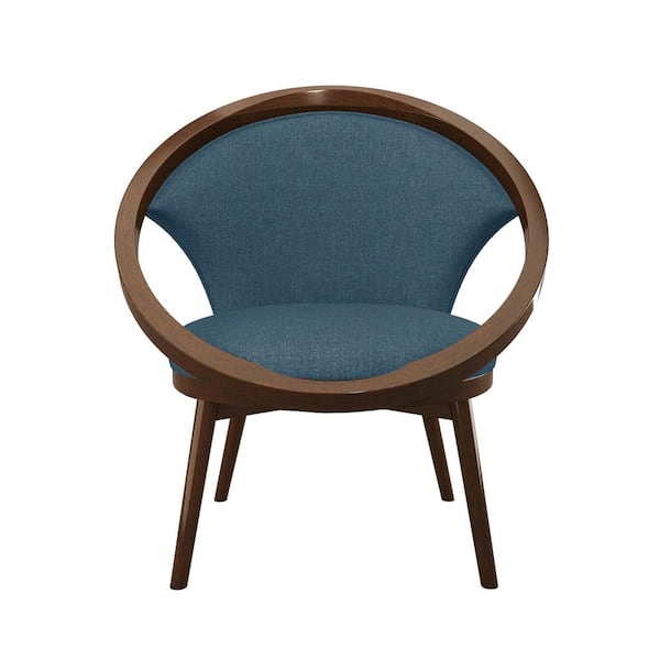 Clair Blue Mid-Century Fabric Upholstery Solid Wood Frame Accent Chair