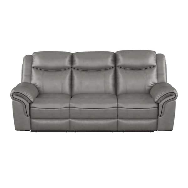 Creeley 88.5 in. Round Arm Faux Leather Straight in Gray