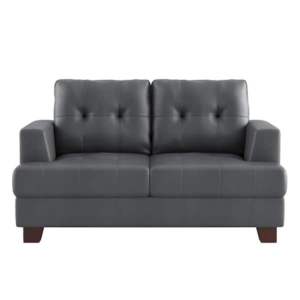 Malcolm 64 in. W Square Arm Faux Leather Straight Love Seat in Gray