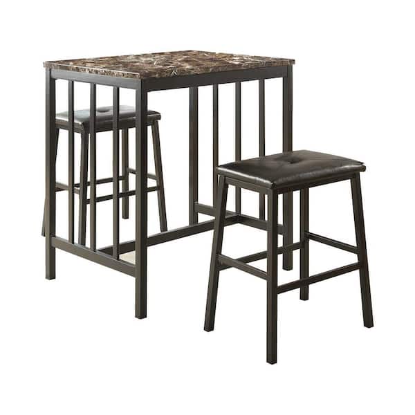 Myan 3-Piece Rectangular Metal and Black Faux Marble Top Counter Height Dining Room Set