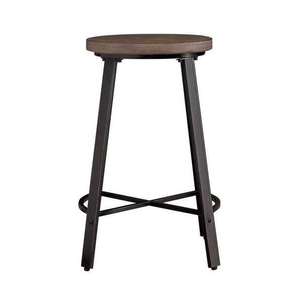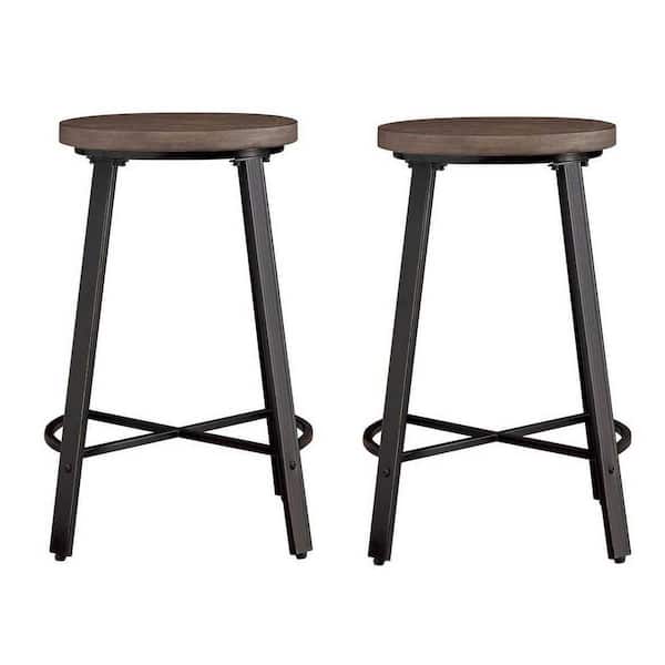 Nelina 24.25 in. Burnished Brown and Gray Backless Metal Frame Bar Stool with Wooden Seat (Set of 2)