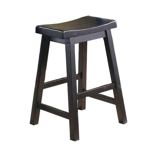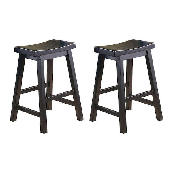 Nisky 23.5 in. Black Backless Wood Frame Bar Stool with Wooden Seat (Set of 2)