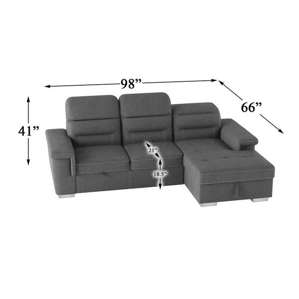 Wystan 98 in. W Microfiber Upholstery 2-Piece Set Sectional Sofa in Gray w/Pull-out Bed and Storage