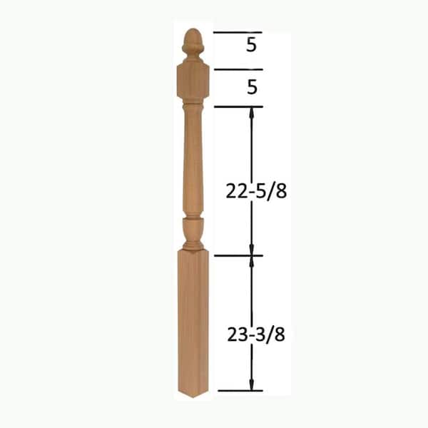 Stair Parts 3030 56 in. x 3-1/2 in. Unfinished Red Oak Classic Acorn Top Newel Post for Stair Remodel