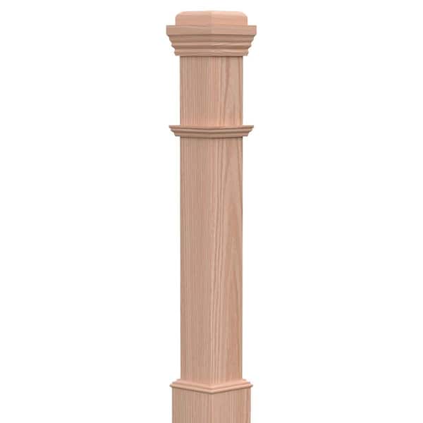 Stair Parts 4090 55 in. x 5 in. Unifinished Red Oak Adjustable Base Box Newel Post for Stair Remodel