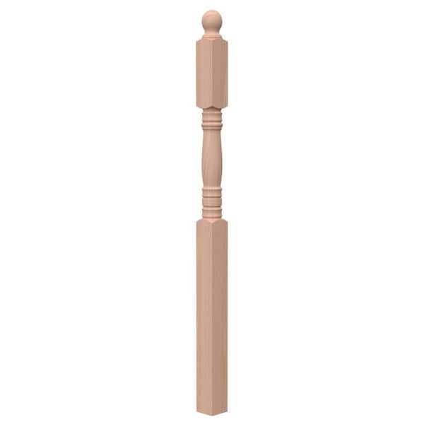 Stair Parts 4545 62 in. x 3-1/2 in. Unfinished Red Oak Ball Top Landing Newel Post for Stair Remodel