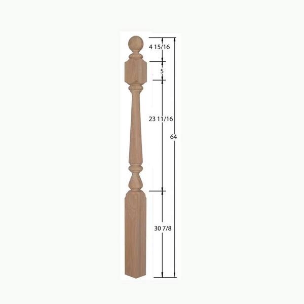 Stair Parts 4840 64 in. x 3-1/2 in. Unfinished Hard Maple Ball Top Newel Post for Stair Remodel