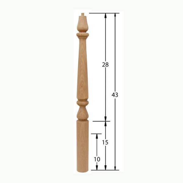 Stair Parts 4863 43 in. x 3-1/2 in. Unfinished White Oak Pin Top Newel Post for Stair Remodel