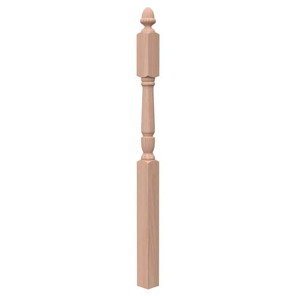Stair Parts 56 in. x 3-1/2 in. Unfinished Red Oak Acorn Top Solid Core Newel Post for Stair Remodel