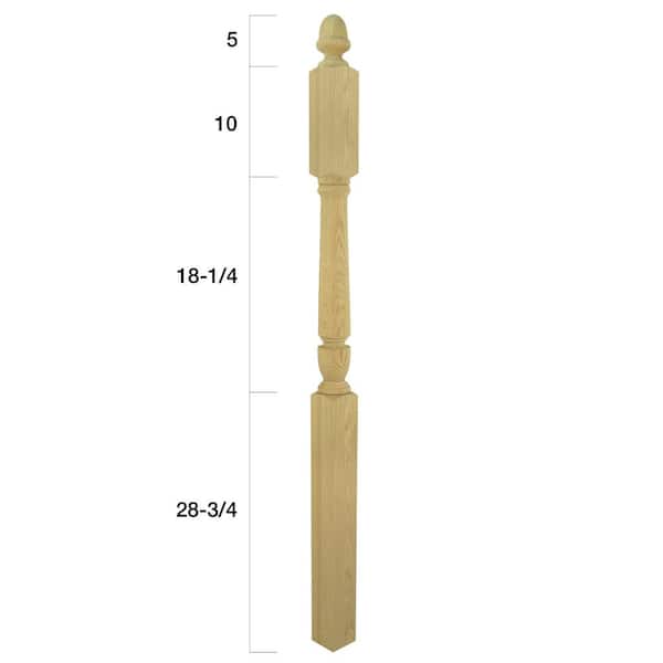Stair Parts 56 in. x 3-1/2 in. Unfinished Red Oak Acorn Top Solid Core Newel Post for Stair Remodel