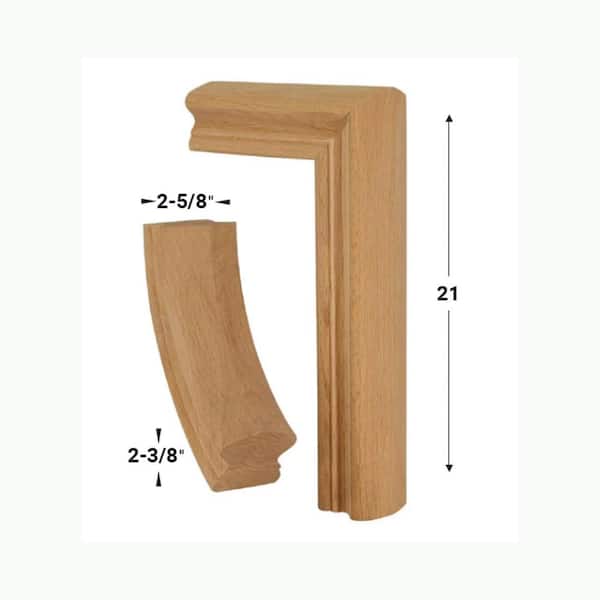 Stair Parts 7599 Unfinished Red Oak Straight 2-Rise Gooseneck No Cap Handrail Fitting