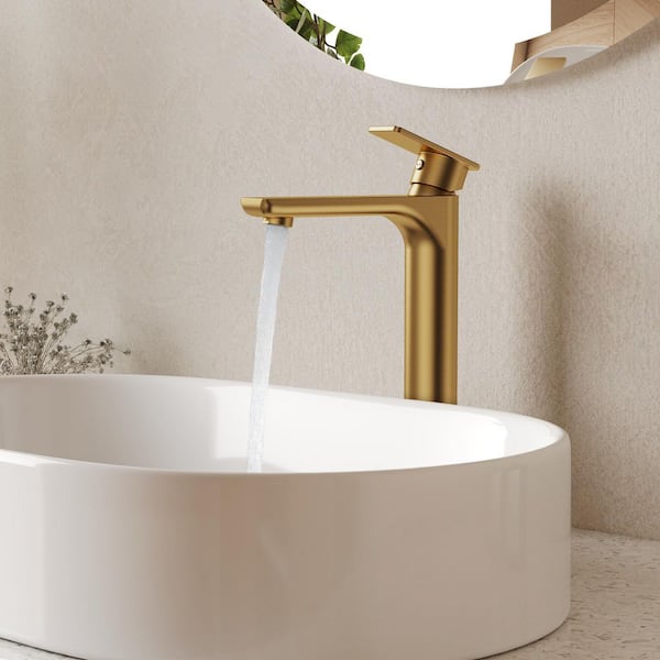 12 in. Faucet Height Single Handle Single Hole Bathroom Faucet Spot Resistant in Brushed Gold Drain Not Included