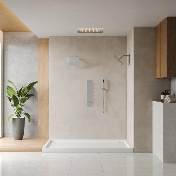 • 20 in. LED main shower with music and dual 10in stainless steel