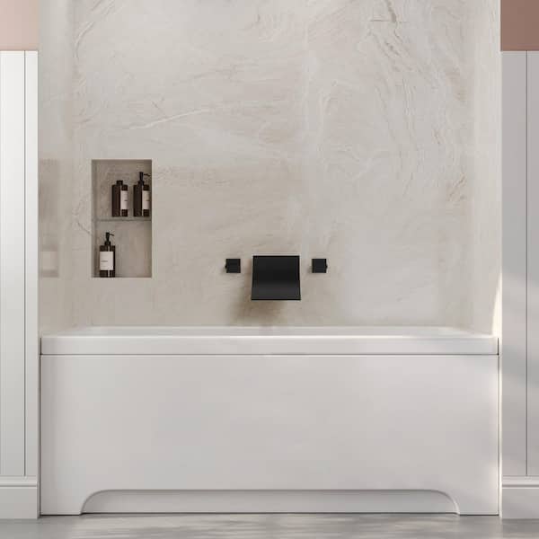 2-Handle Handle Wall Mounted Waterfall Roman Tub Faucet, with High Flow and Brass Rough-In Valve in Matte Black