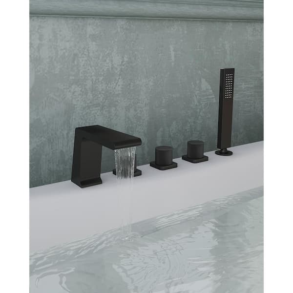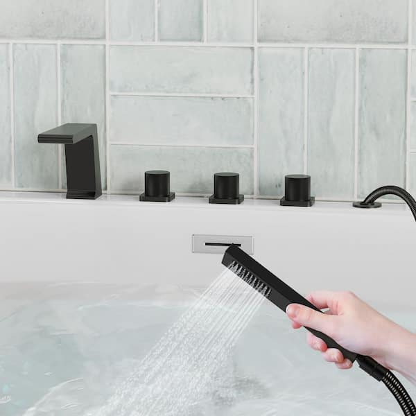 3-Handle Tub-Mount Roman Tub Faucet with Hand Shower in Matte Black