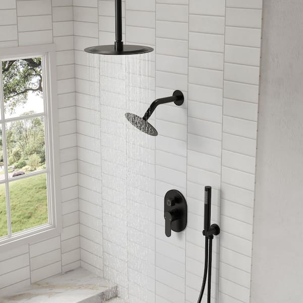 3-Spray Patterns Round Fixed Shower Head 10 and 6 in. with 2.5 GPM Ceiling Mount Dual Shower Heads in Matte Black