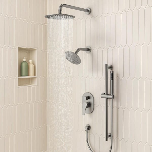 3-Spray Patterns Round Fixed Shower Head 10 and 6 in. with 2.5 GPM Wall Mount Dual Shower Heads in Brushed Nickel