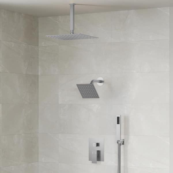 3-Spray Patterns Square Wall Mount Shower Head with Handheld Shower Head and 2.5 GPM in Brushed Nickel