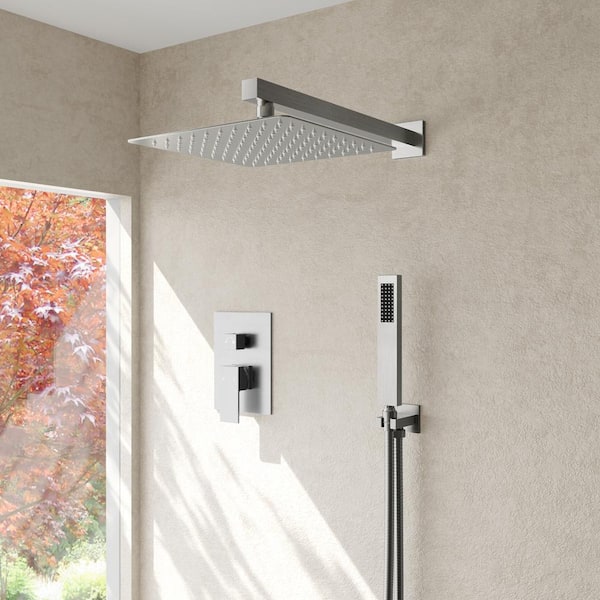 3-Spray Patterns with 10 in. Dual Wall Mount Shower Heads with Hand Shower in Brushed Nickel 2.5 GPM with Sink Faucet