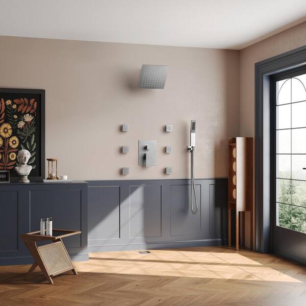3-Spray Wall Mount Dual Shower Head and Handheld Shower with 6-Jets in Brushed Nickel (Valve Included)