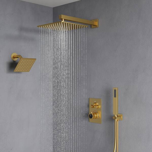 6 in. and 7-Spray 12 in. Thermostatic Wall Bar Shower Systems with Handheld 2.5 GPM in Brushed Gold (Valve Included)