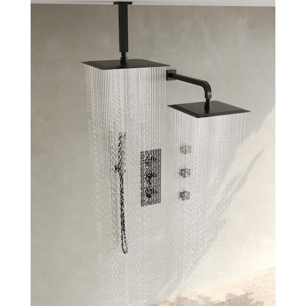 8-Spray Patterns Two 12 in. Dual Shower Head 2.5 GPM Ceiling Mount Fixed and Handheld Shower Head in Matte Black