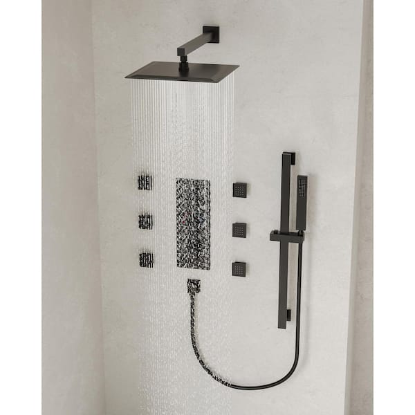 8-Spray Patterns Wall Mount Two 12 in. Fixed Shower Head with Handheld with 2-Curved Flat Handheld Shower Head