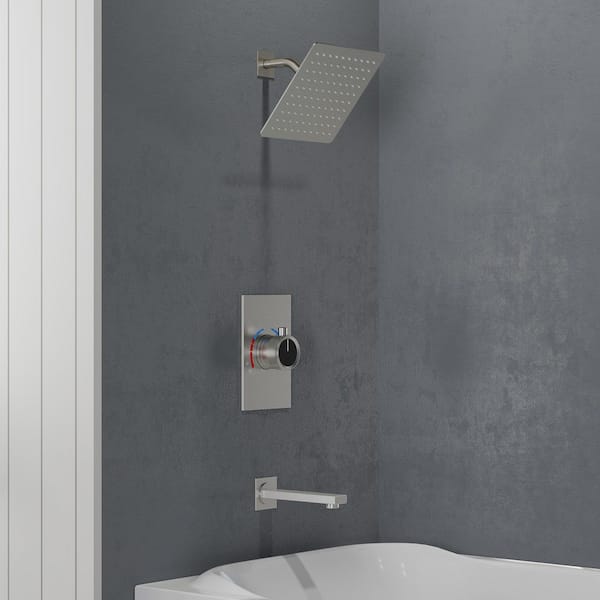 8 in. Single Handle 2-Spray Wall Mount Tub and Shower Faucet in Brushed Nickel (Valve Included)