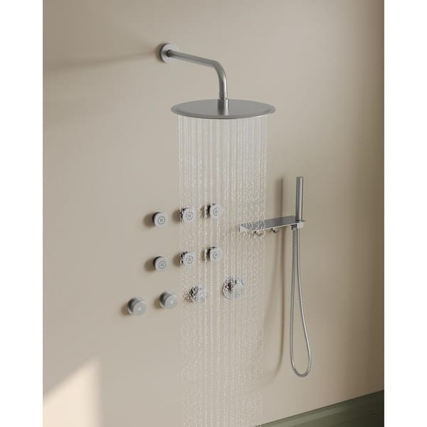 DIY 12 in. 7-Spray Patterns Wall Mount Dual Shower Heads with Fixed and Handheld Shower Head (Valve Included)