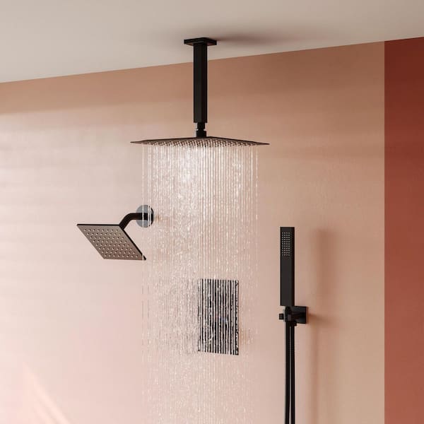 Family-Friendly 7-Spray Multiple Press 12 in. Wall Bar Shower Kit with Anti Scald 2.5 GPM in Matte Black Valve Included