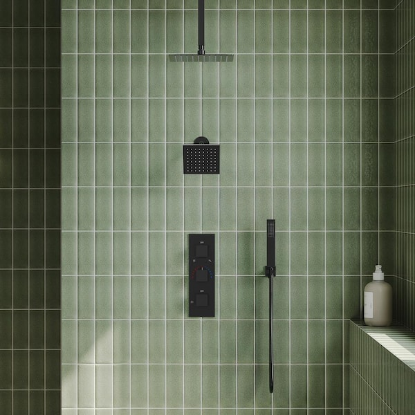 Luxury 3-Spray Patterns Thermostatic 12 in. Ceiling Mount Rainfall Shower Faucet and Dual Shower Heads with 6-Jet