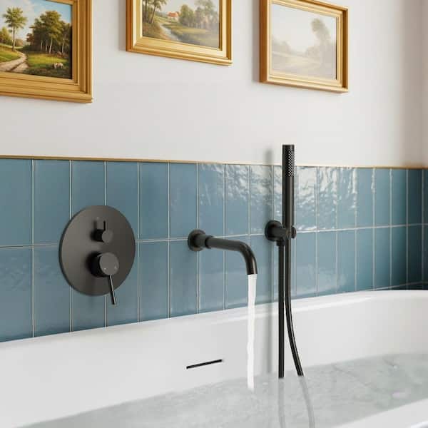 Single Handle 2-Spray Tub and Shower Faucet 2.5 GPM in. Matte Black Valve Included